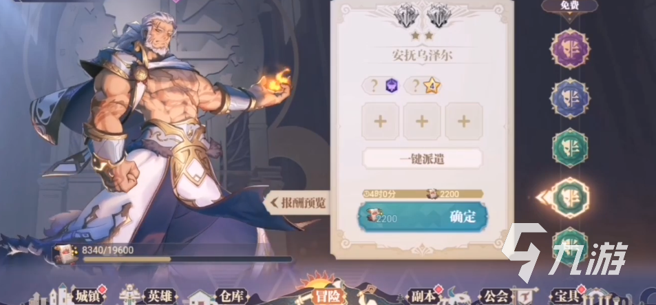 再來就是任務(wù)的玩法設(shè)定了,懸賞任務(wù)是不需要玩家進(jìn)行戰(zhàn)斗操作的,只需要放入對(duì)應(yīng)的任務(wù)要求英雄就行了。比如說一個(gè)五星的任務(wù),那么任務(wù)會(huì)要求玩家提供一個(gè)風(fēng)屬性英雄、一個(gè)暗屬性英雄,以及一個(gè)五星英雄來進(jìn)行搭配。如果玩家英雄數(shù)量相對(duì)較多的話,也可以點(diǎn)擊一鍵派遣來進(jìn)行快速的操作。這里大家要注意,任務(wù)的要求是硬性的,如果說不按照要求來搭配是無法完成任務(wù)了。