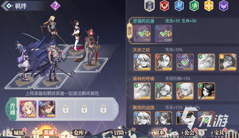 羈絆的激活在需要英雄的數(shù)量上是有很大差異的,最低要兩個(gè)來進(jìn)行激活,而最高是需要五個(gè)英雄來進(jìn)行激活的,其中相差的屬性能力也是很大的。玩家在剛解鎖羈絆玩法的時(shí)候,下方的羈絆英雄位置是只有兩個(gè)的,所以說暫時(shí)只能夠使用一些低級(jí)的羈絆屬性帶來提升,這個(gè)對(duì)于戰(zhàn)斗的收益不是很大。