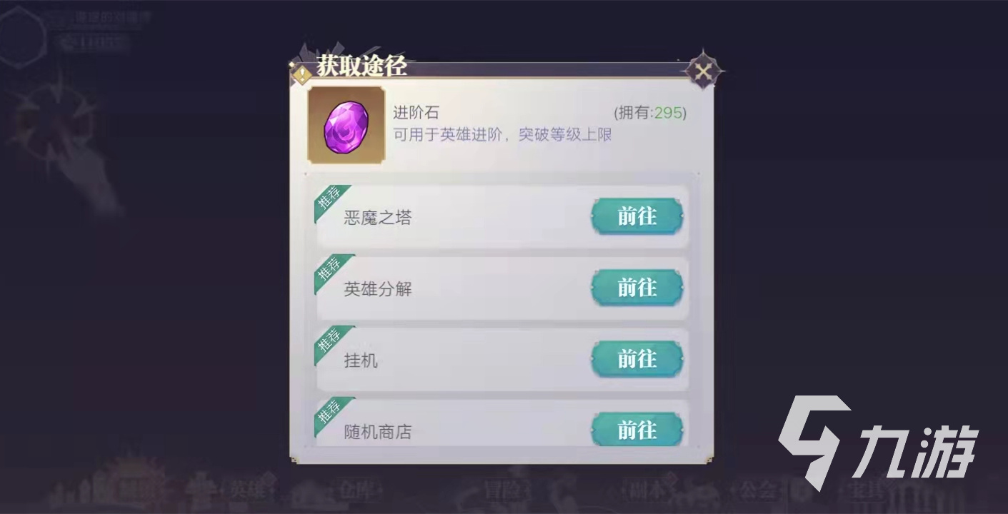 進階石可在英雄界面用于角色的進階,可以最大限度提升角色的實力,突破上限。目前游戲里獲取進階石的方法一共有四種,第一種是通過主線劇情以及掛機的方式獲取,玩家在冒險界面通過挑戰(zhàn)主線關(guān)卡去獲取對應(yīng)的獎勵,成功通關(guān)之后,玩家可獲得金幣,經(jīng)驗以及進階石獎勵。另外在玩家下線期間,系統(tǒng)也將自動為玩家掛機,掛機可領(lǐng)取一定的進階石獎勵。