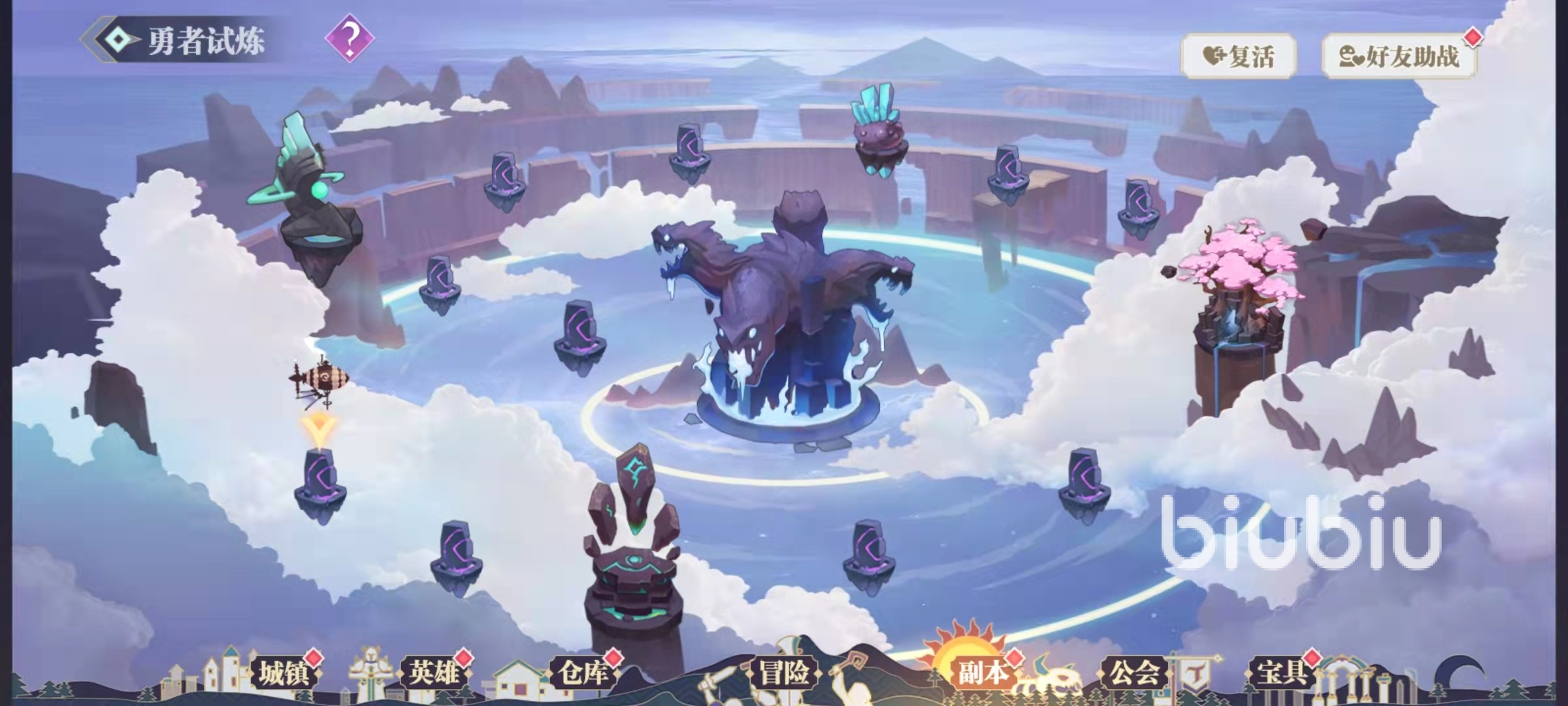 勇者試煉最大的難度就是每次戰(zhàn)斗之后狀態(tài)不會(huì)得到回復(fù),所以血量是越來越低,陣亡的英雄也不能復(fù)活。但是玩家可以通過借用的方式,在好友那里借最多三名英雄加入戰(zhàn)斗,這就是通關(guān)的關(guān)鍵。因?yàn)榻鑱淼挠⑿燮毡閼?zhàn)斗力高,所以是通關(guān)的好幫手。