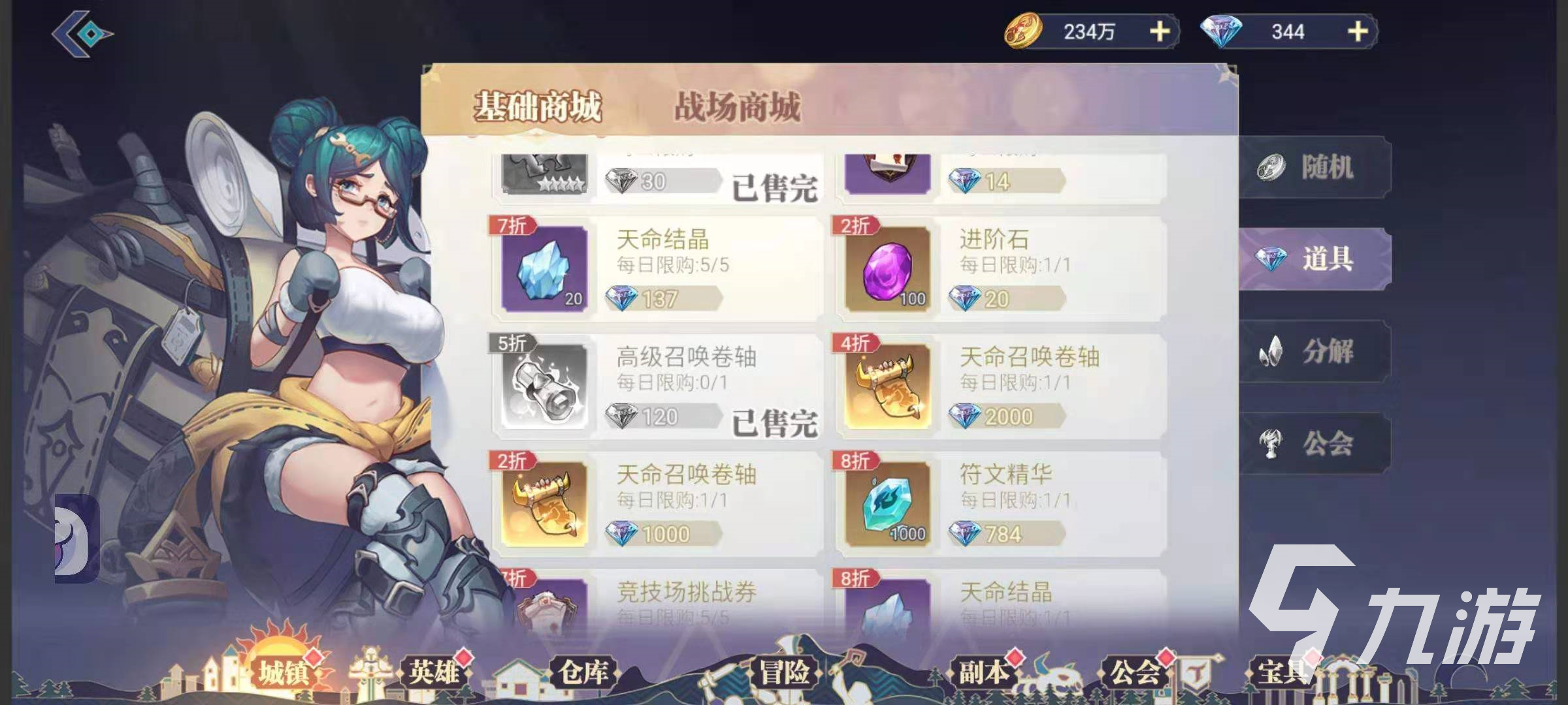 在基礎(chǔ)商城里,玩家可以購買到許多必須的道具和珍貴的英雄碎片,可以助自己的隊(duì)伍一臂之力,同時(shí),在基礎(chǔ)商城里經(jīng)常有極大的優(yōu)惠活動,像兩折的英雄升級必備的進(jìn)階石,一百個(gè)只需要20鉆,兩折的高級英雄召喚必備的天命召喚卷軸只需要1000鉆,這樣誰不心動?不過每日商品有限購次數(shù),心動就行動,機(jī)會錯(cuò)過就不再重來。