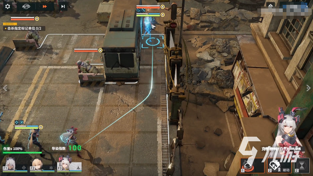 第二種克制方式就是使用范圍技能了,人形的輸出單位火力或者說支援的話都是帶有一些范圍傷害技能的。使用這部分技能的話是可以跨過障礙物來進行輸出的,在輸出能力上是相對不錯的。多次使用技能之后,就可以將敵人給解決掉了。