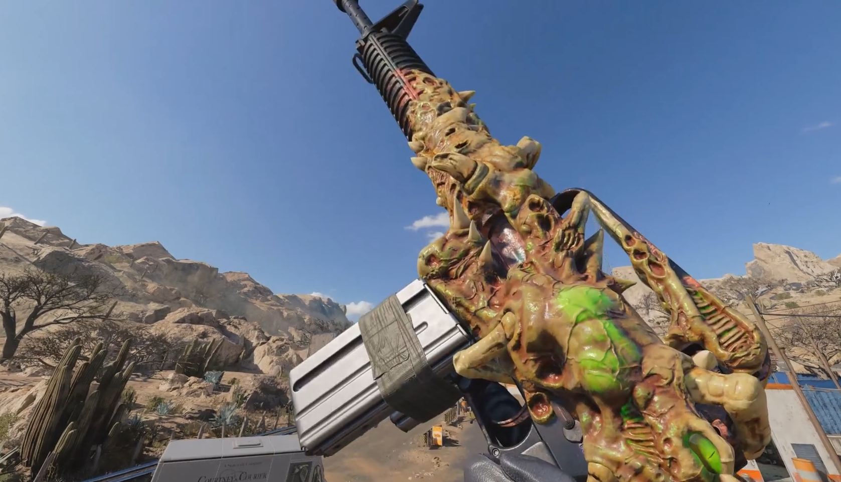 首先的是有些精神污染的m16孵化器:由外星感染組合包中獲得,整個包中除了孵化器以外還附贈了一個MP5的消毒器。這個暫且不談,主要講的是m16。這把槍的槍身側面包裹著一只6條腿的異星生命體,整個生命體像寄生在槍上一樣。如果玩家試著觸碰它,它還會向你嘶吼。