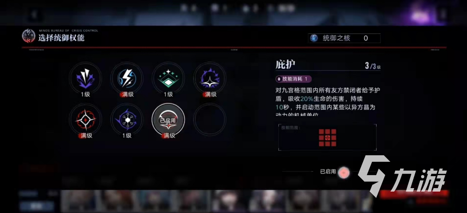 首先,這關(guān)小編推薦各位攜帶統(tǒng)御全能庇護(hù),庇護(hù)能夠?yàn)榫艑m格內(nèi)的我方禁閉者添加上護(hù)盾吸收傷害,在隊(duì)伍等級整體不高的時(shí)候,或是對面輸出太高的時(shí)候,這個(gè)技能都很有用處。