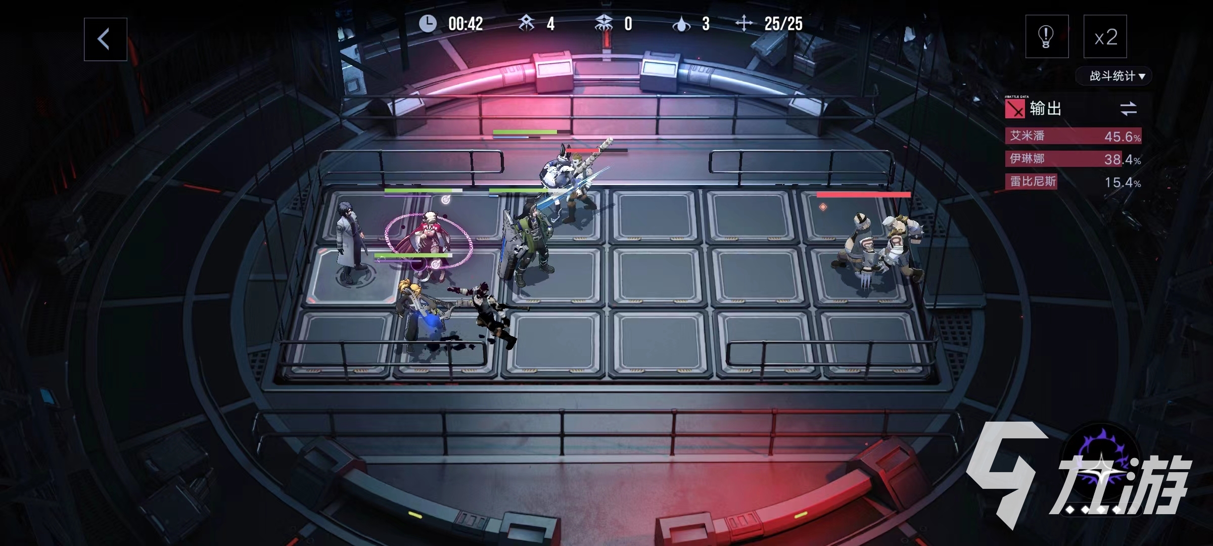 上圖是小編這里的角色選取,艾米潘和伊琳娜都有破核能力,艾米潘射程遠(yuǎn),可以對付這一關(guān)射程遠(yuǎn)的敵人蝙蝠,伊琳娜有一定的群攻能力,可以避免敵人的堆積,剩下的角色最好是一個選擇擋二的堅韌禁閉者,另一個最好是詭秘或是狂暴禁閉者,這樣既可以擋住敵人,又可以輸出,一舉兩得。