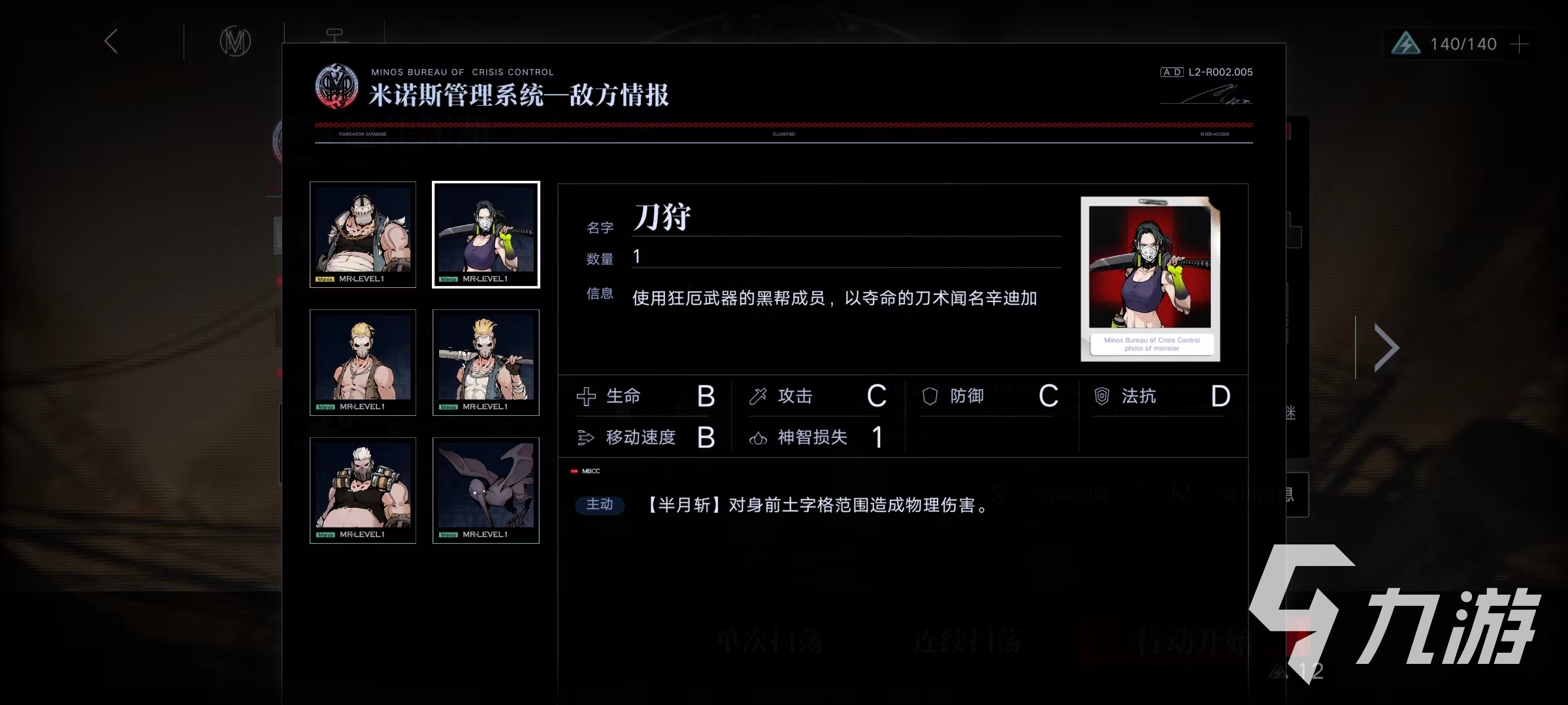 首先來說說刀狩吧,刀狩是一個數(shù)值不高,勝在技能槍的敵人,她面板攻擊力不高,防御力和生命值也偏低,要處理起來很好處理,不過她的主動技能半月斬可以對我方禁閉者造成范圍傷害,所以有些麻煩,這個技能會有一個蓄力時間,蓄力的時候可以被破核技能打斷,所以最好找一個破核禁閉者來處理她。