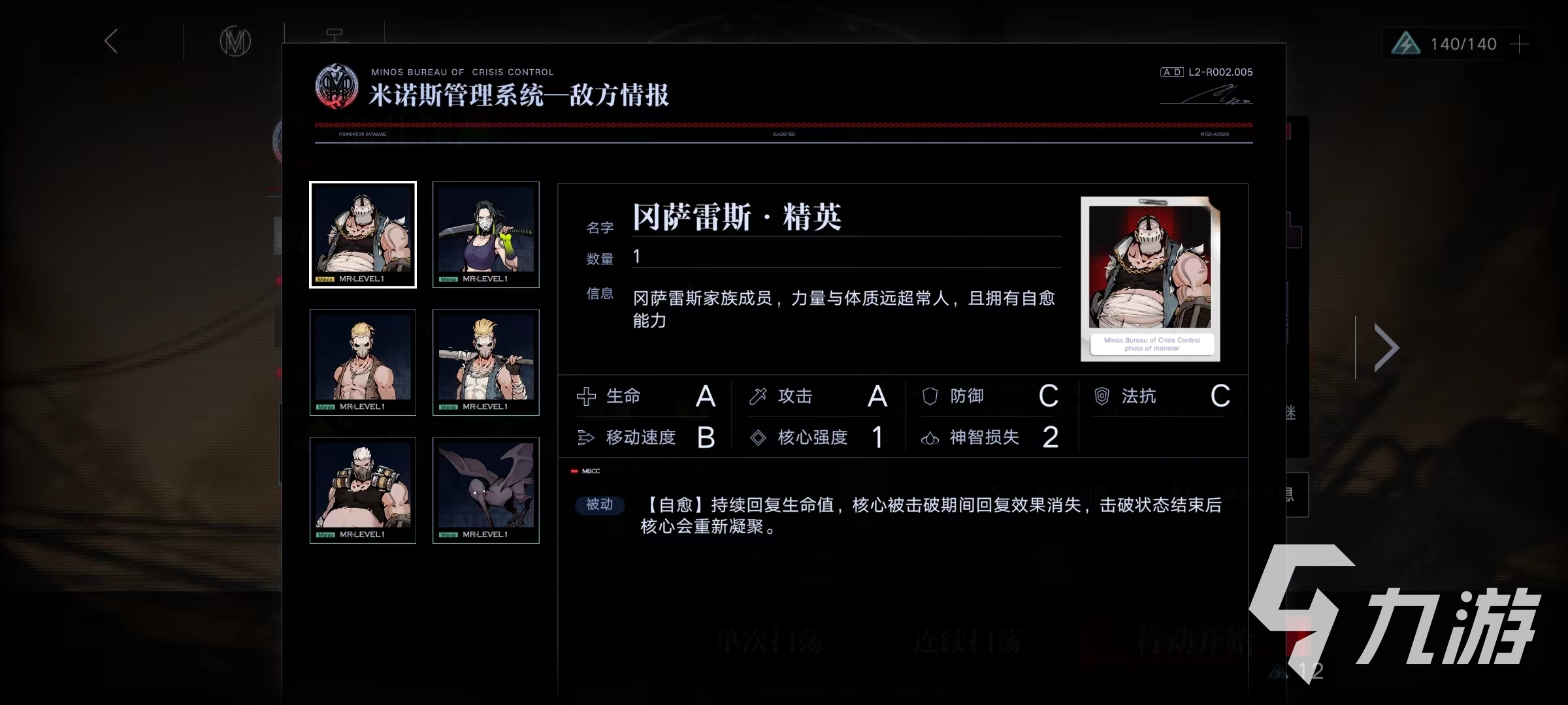 接下來說的是岡薩雷斯·精英,這個敵人比起刀狩來說可以說是更難處理了,他面板數(shù)值很高,而且被動技能自愈不斷回復(fù)生命值加上他自身較高的生命值會很難處理,自愈在核心被破壞之后就會失效,所以和處理刀狩一樣,也要專門帶一個破核禁閉者來處理他。