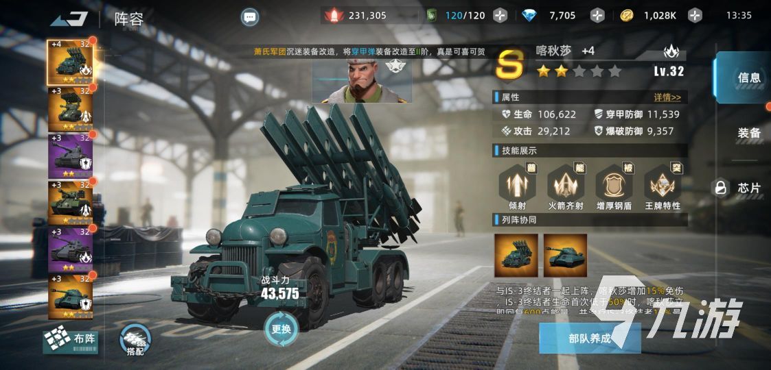 排名第三的坦克為喀秋莎,這個(gè)坦克的火箭齊射,可以對(duì)敵方所有部隊(duì)造成爆破傷害,施加灼燒效果,如果敵方處于燃燒或者融化狀態(tài),還會(huì)額外增加30%,那么怎么施加這兩種狀態(tài)呢?只要普通攻擊就可以,可以說這是對(duì)于平民玩家十分友好的一個(gè)坦克,比較容易培養(yǎng),并且進(jìn)階到三星之后,就可以獲取怒火高漲,如果敵方存在被燃燒的部隊(duì)普攻之后還會(huì)回復(fù)自身的能量,性價(jià)比十分的高。