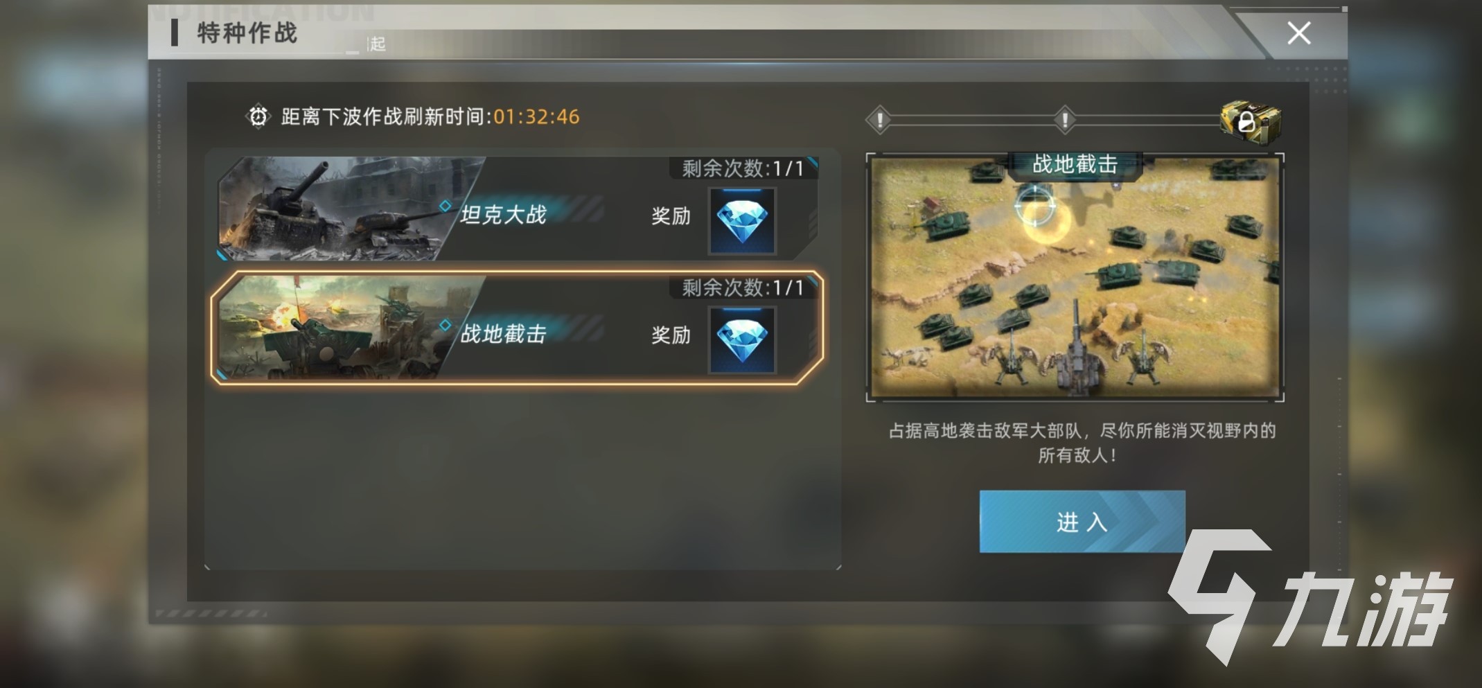 在戰(zhàn)地截?fù)絷P(guān)卡中,玩家將占據(jù)高地來(lái)消滅大部隊(duì)敵人,只要點(diǎn)擊屏幕就可以對(duì)指定區(qū)域發(fā)動(dòng)炮擊。敵人的種類分為普通坦克、飛機(jī)和主戰(zhàn)坦克,消滅排位越靠后的敵人增加的積分越多,同時(shí)還能獲得戰(zhàn)機(jī)培養(yǎng)素材哦~