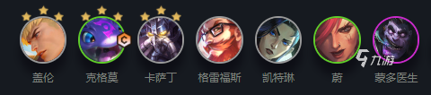 卡薩丁、女警、蓋倫都是1費(fèi)卡,所以建議玩家前期不升級不D牌,等到4升5的最后階段,ALL IN找這三位英雄三星,視情況收手。之后存錢,超50的利息慢慢D沒三星的英雄,等到6級后可以ALL IN找三星大嘴。這時候?qū)κ忠话愣忌?找到高費(fèi)主C,大嘴不散形式撐不起強(qiáng)度的。