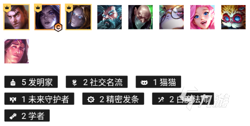 陣容羈絆:五發(fā)明家兩社交名流一貓貓一未來守護(hù)者兩精密發(fā)條兩白魔法師兩學(xué)者。
