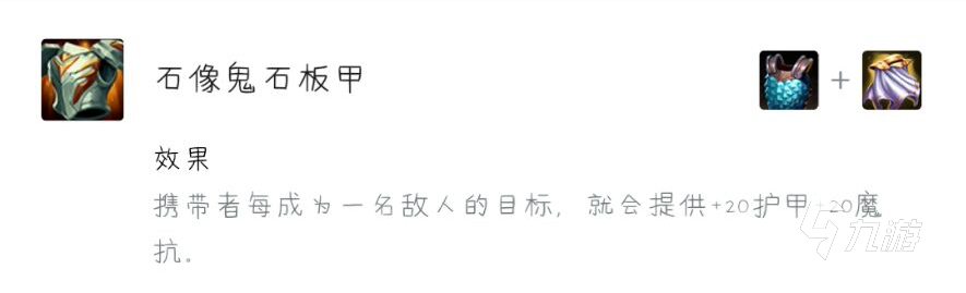 從加里奧的技能以及羈絆來看,這個賽季的加里奧還是偏向前排的,所以裝備也就是防御裝啦,推薦大家石像鬼石板甲、狂徒、反甲這三件套,其中石像鬼石板甲還是比較重要的,在戰(zhàn)斗開始時的嘲諷效果能夠迅速疊加護甲再加上保鏢羈絆能夠有一個很高的坦度。