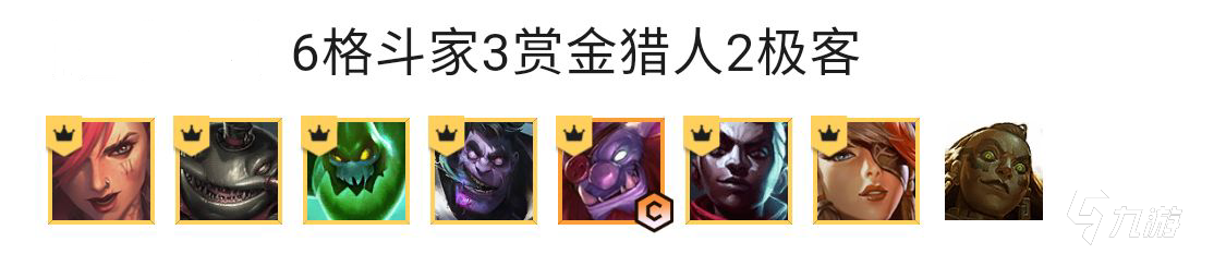 陣容羈絆:六格斗家三賞金獵人兩極客。