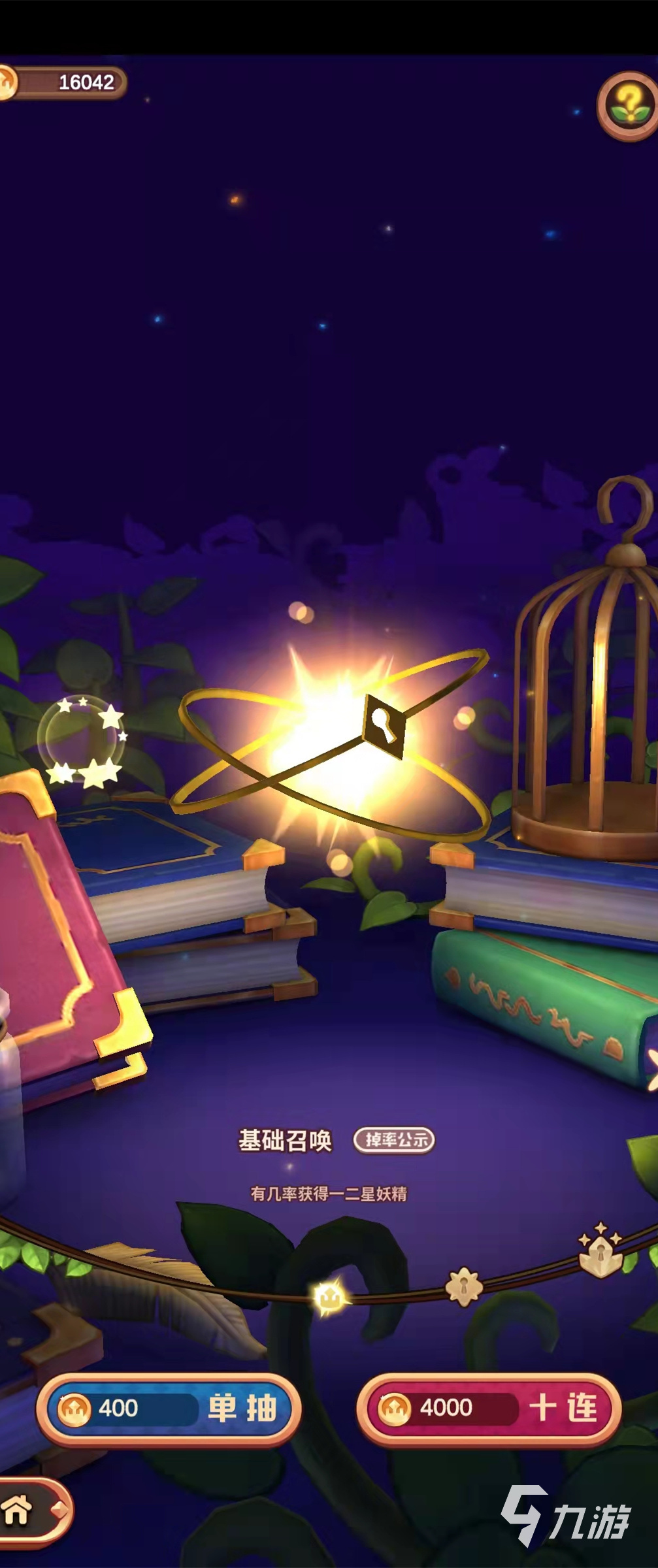 首先玩家進(jìn)入到諾弗蘭物語主界面,將屏幕向左劃一劃就可以看到主界面的召喚入口,進(jìn)入召喚界面,就可以看到第一種召喚妖精的方法,叫做基礎(chǔ)召喚,也叫作金幣召喚,可以單抽,也就是單次召喚,單次召喚的價(jià)格是四百金幣,還可以十連,就是十連召喚,價(jià)格是四千金幣,基礎(chǔ)召喚有百分之十幾率獲得一二星妖精,二星妖精的概率是百分之一點(diǎn)七五,一星的幾率是百分之八點(diǎn)二五,有百分之六十的概率獲得禮物,還有百分之三十可以獲得其他的道具,建議玩家用十連召喚,失落的情緒小。
