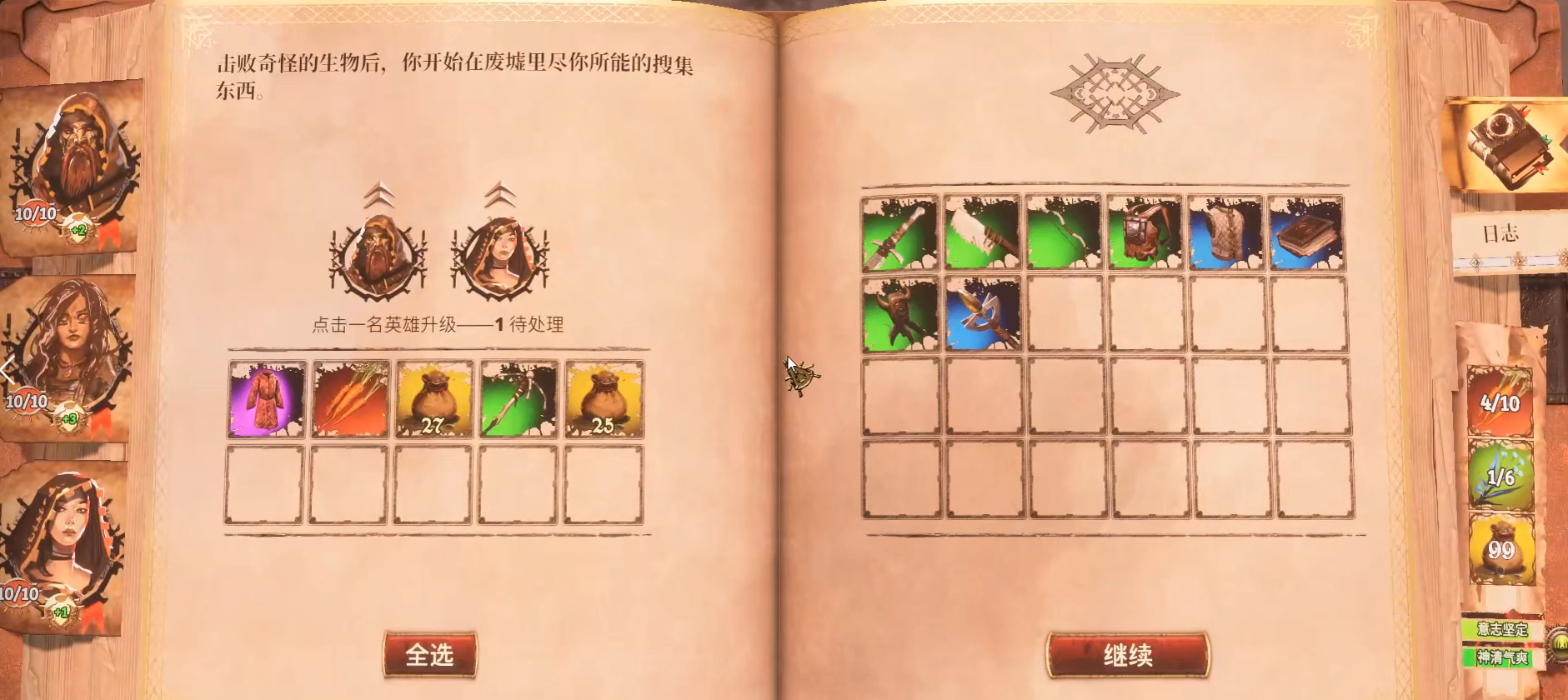 首先是游戲里見(jiàn)面是以一本書(shū)的形式展開(kāi),我們玩家接下來(lái)所有的冒險(xiǎn)都將以這本書(shū)為藍(lán)本,所有發(fā)生的事情都以書(shū)上為記載。包括對(duì)角色的升級(jí),裝備的換裝以及狀態(tài)的補(bǔ)給。這個(gè)事情的消息做得非常良心的一個(gè)地方。感覺(jué)這不是一場(chǎng)普通的游戲,還是一本史詩(shī)的冒險(xiǎn)記載。