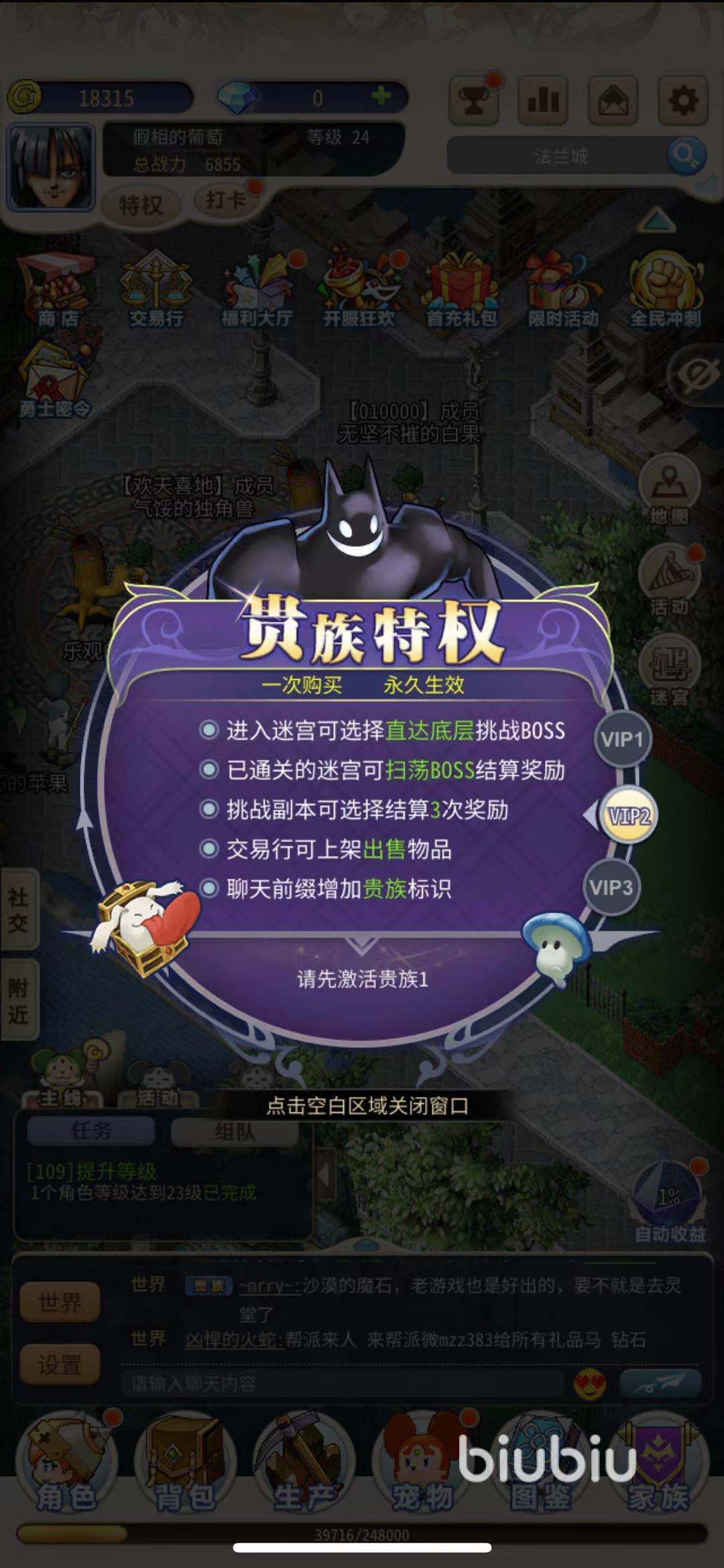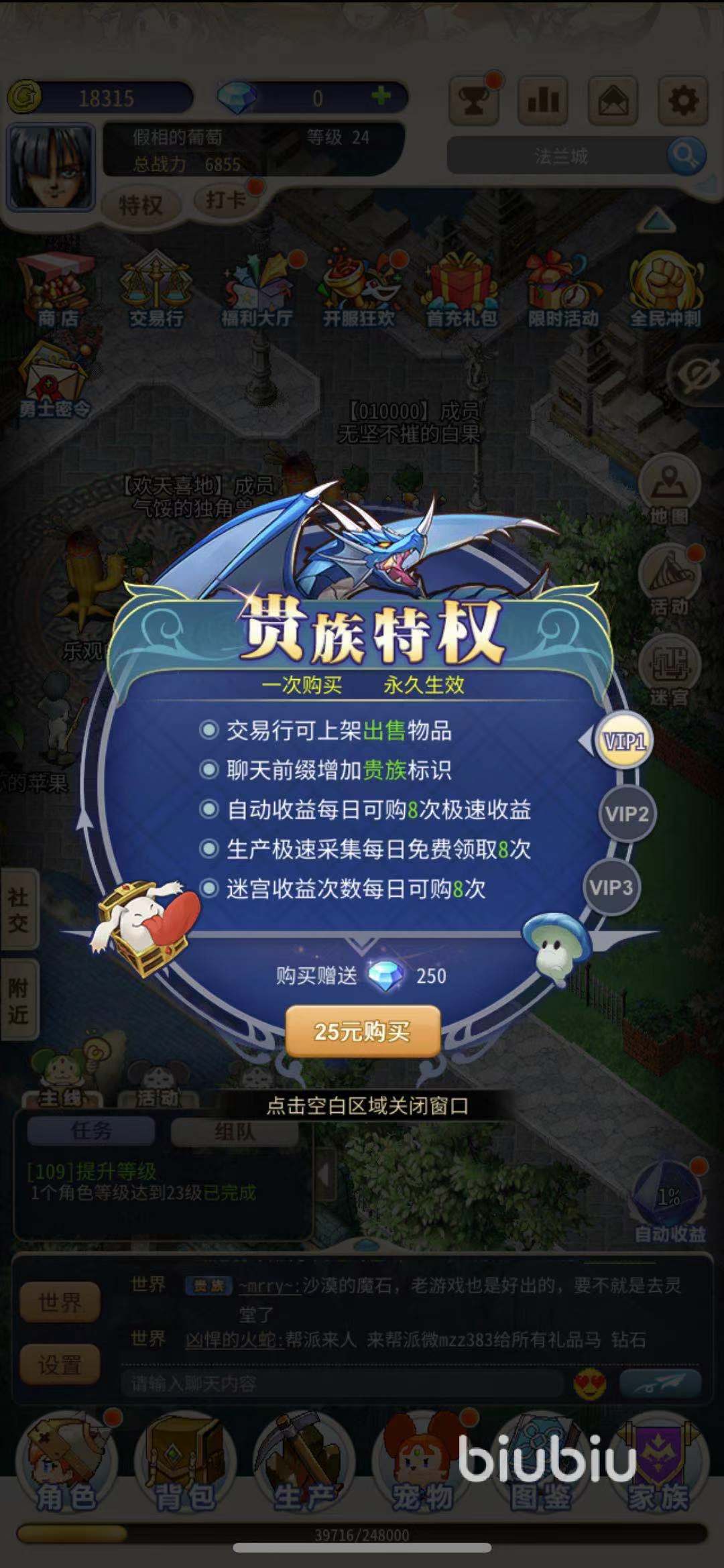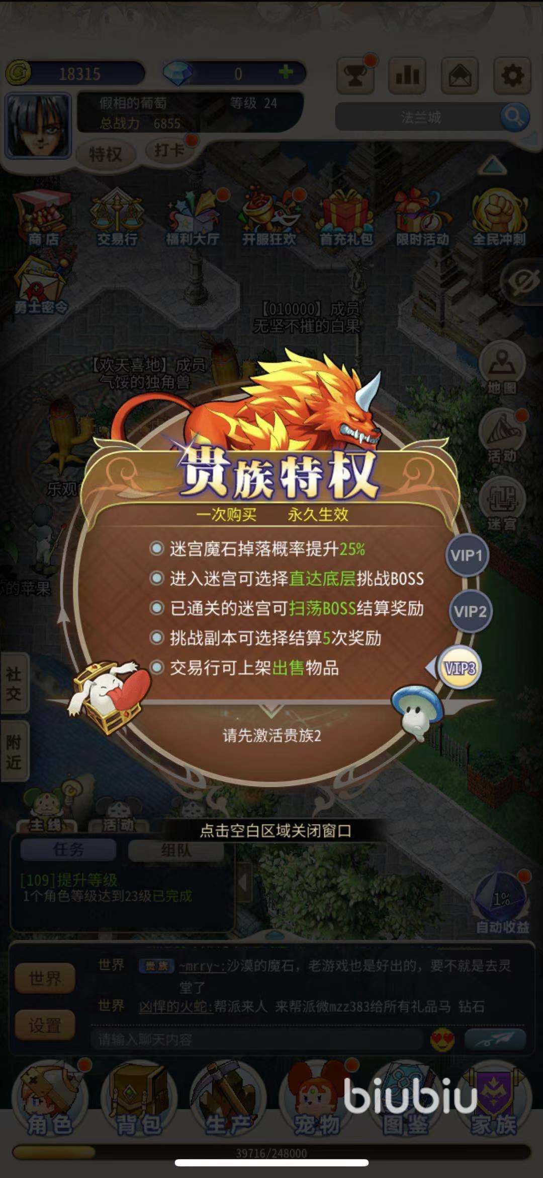 貴族特權(quán)在游戲中可以幫助我們提高自動(dòng)收益,生產(chǎn)極速采集領(lǐng)取次數(shù),迷宮收益次數(shù)等等,一次購(gòu)買永久生效。高等級(jí)貴族特權(quán)更可以享受迷宮魔石掉落概率提升25%,進(jìn)入迷宮可選擇直達(dá)底層挑戰(zhàn)BOSS,已通關(guān)的迷宮可進(jìn)行掃蕩boss結(jié)算獎(jiǎng)勵(lì),挑戰(zhàn)完副本還可以結(jié)算5次獎(jiǎng)勵(lì),有了這些便利條件,玩家獲取稀有物品和稀有寵物就會(huì)更容易,帶著稀有寵物在游戲中會(huì)非常拉風(fēng)。