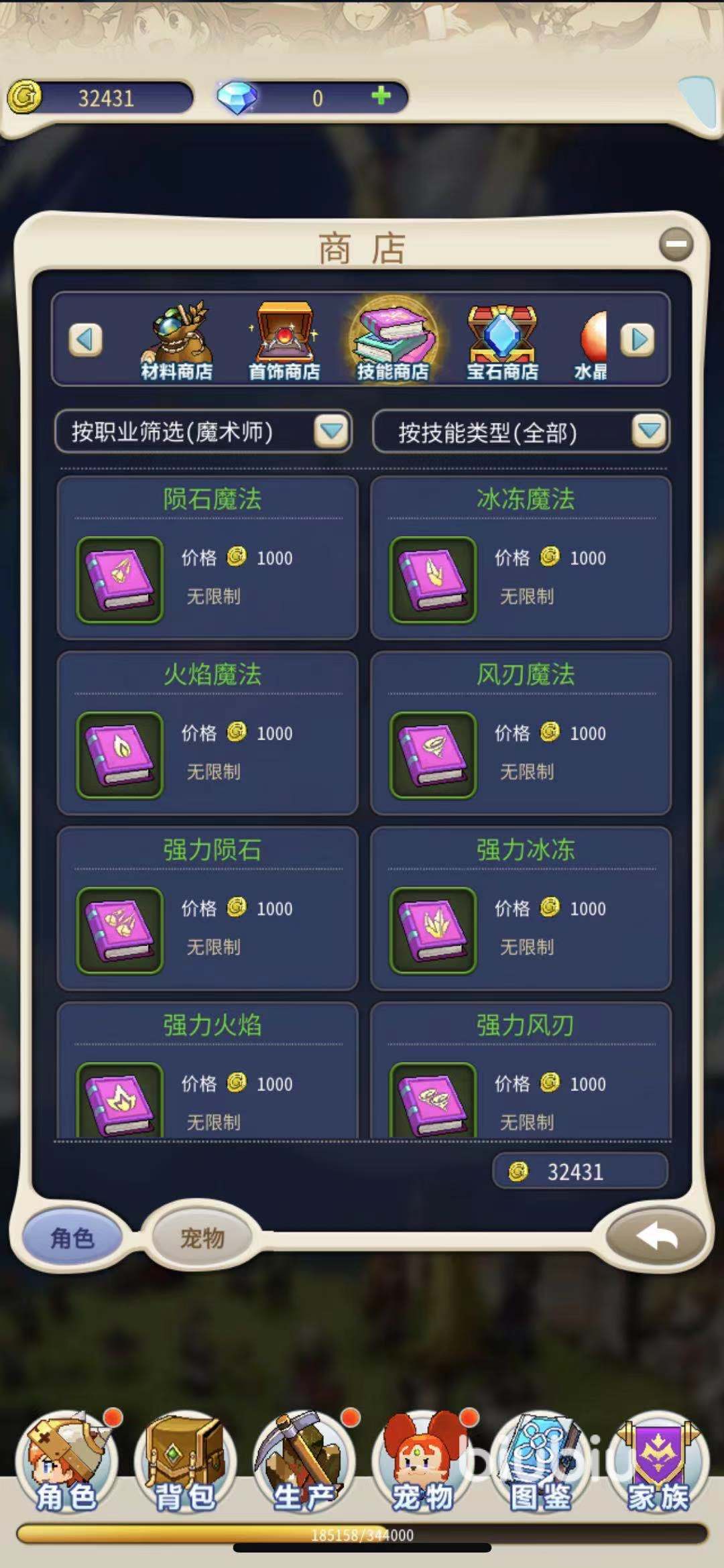 角色轉(zhuǎn)職后需要學(xué)習(xí)對應(yīng)的職業(yè)技能,職業(yè)技能分為了三個階段,每個階段技能都需要通過學(xué)習(xí)技能書來獲取,后期升級技能需要神氣的草藥進(jìn)行升級,因此技能書作為解鎖技能的重要道具主要來源是通過商店內(nèi)購買獲得,在主界面找到商店,點(diǎn)擊進(jìn)入之后選擇技能商店,在這里可以看到角色職業(yè)對應(yīng)所能學(xué)習(xí)的技能書,第一階為綠色技能書,第二階為藍(lán)色技能書。