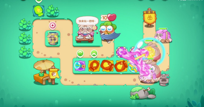 2、畫(huà)面中會(huì)加入一只帶滾輪的兔子,防御力很強(qiáng)。所以建議重點(diǎn)用火瓶攻擊,或者保持攻擊。因?yàn)檫@是一個(gè)非常強(qiáng)的防御,如果敵人出現(xiàn),保持攻擊,防止在后面被攻擊。所以要小心這張地圖里的兔子。攻擊的時(shí)候會(huì)比較煩人。