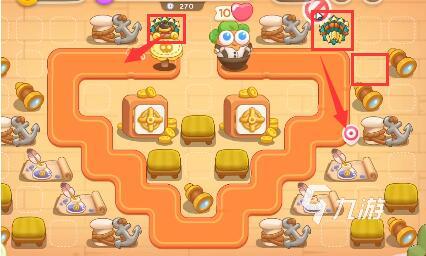 第五關(guān)內(nèi)共有三個場次,第一場的過關(guān)要求是玩家需要累積獲得10000金幣,在放置炮塔的選擇上,整關(guān)都使用分裂箭以及毒針就可以輕松過關(guān)了,開局之后我們先選擇分裂箭來開圖清怪,清理掉道具之后就放置分裂箭,如果感覺攻擊力不夠的話就再找位置放置幾個毒針即可。推薦大家在多條道路的交匯處放置炮塔,讓炮塔在攻擊范圍內(nèi)攻擊到最多的敵人。