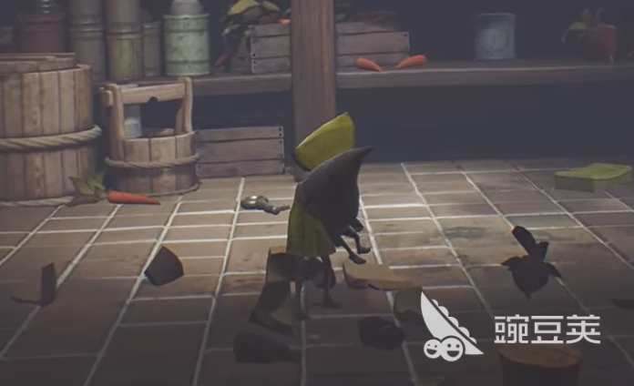 第二個(gè)尖刺頭人則稍微麻煩一些,它躲在食材架上一個(gè)瓶子里面,拿到鑰匙再下電梯就能看見(jiàn)一個(gè)小人從右邊跑到左邊。別急著追它呢,它其實(shí)是在給你發(fā)提示哦!按照它的方向走吧,在食材架那里你會(huì)看到一個(gè)瓶子輕輕搖晃。那個(gè)時(shí)候就是把那個(gè)瓶子抱起來(lái)狠狠的摔在地上,碎掉以后尖刺頭人就會(huì)出現(xiàn),這種設(shè)計(jì)很巧妙,要觀察,還要判斷。很多第一次玩的小伙伴都會(huì)因?yàn)闆](méi)看到瓶子的小動(dòng)作而錯(cuò)失這個(gè)隱藏點(diǎn)。