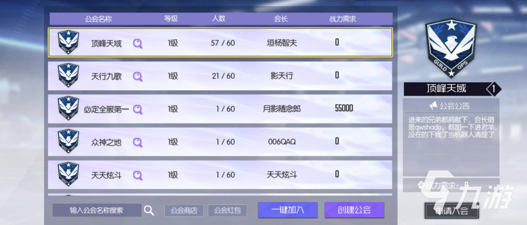 該玩法是基于公會的,所以說沒有加入公會或者還沒有創(chuàng)建自己公會的玩家是沒有辦法參與該玩法的,另外該玩法的開啟時間是每周的周一跟周二才有的哦,在參加該玩法之前是需要玩家們?nèi)ジ芾韱T提交報名材料的,成功報名了之后是可以在公會的聊天界面里邊查到相關(guān)的信息的。該玩法是針對公會之間的一個挑戰(zhàn),所以對于玩家的實力還是有很大的要求的,因為角色的屬性各異,戰(zhàn)力就會有很大的趨勢。