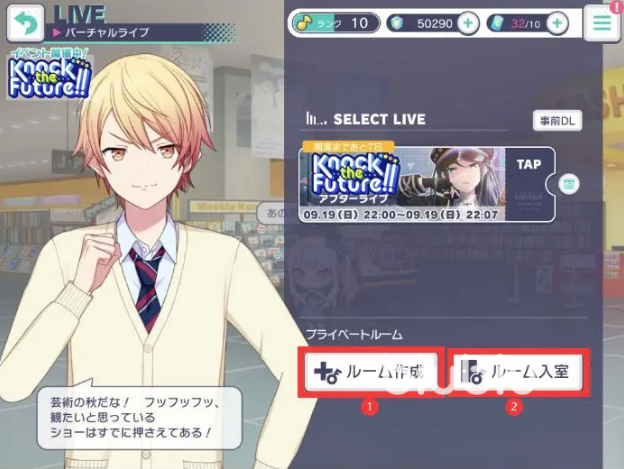 玩家如果想和好友共同觀看live,先創(chuàng)建一個房間,在房間選項里選擇指定演唱會,點擊作成,然后把房間的數(shù)字ID發(fā)送給好友,好友輸入房間ID就能進入房間組隊了。