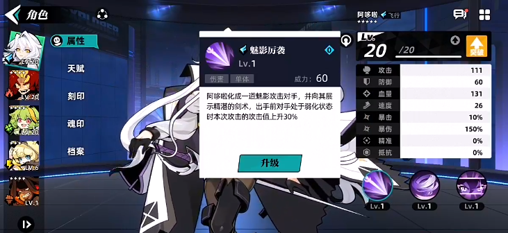 她作為中庭的管理者,擁有非常強大的輸出之力,有自己的原則,劍術非常精湛,是游戲內少有的輸出強勢角色,基本上很少能遇到對手,1 : 1的時候幾乎無敵,這個角色擁有飛行印記,她的每一個招式都是很炫酷的,擁有三個技能,一技能為魅影厲襲,屬于單體攻擊技能,可以對敵方指定對手展示強大的劍術,如果出手時對手處于弱化狀態(tài),那么本次攻擊的攻擊值將上升30%。