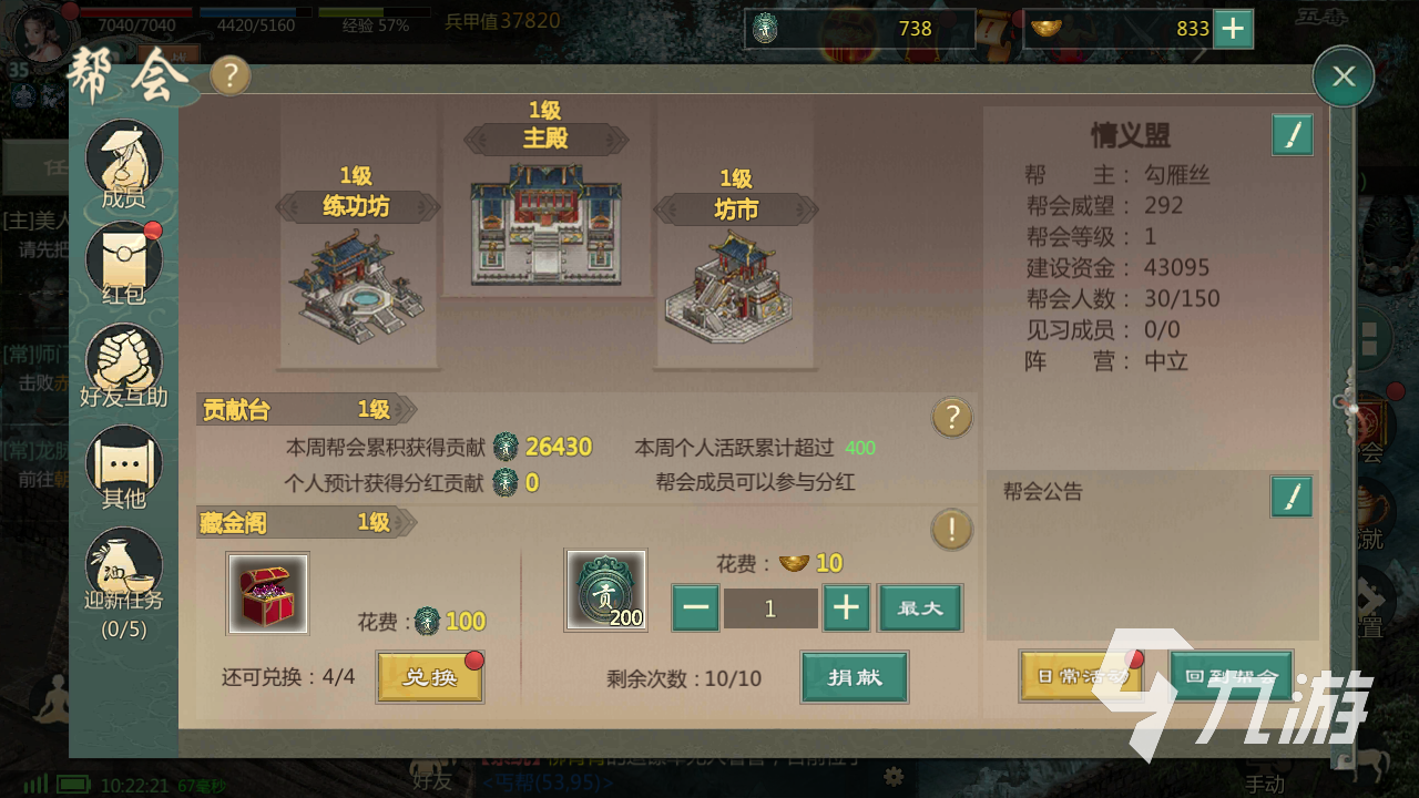 幫會(huì)的坊市是隨著幫會(huì)等級(jí)來(lái)進(jìn)行提升的,所以說(shuō)幫會(huì)的等級(jí)還是有一定關(guān)系的。不過(guò)就算是基礎(chǔ)的幫會(huì)等級(jí),在里面的道具也是有一些重要用途的,可以帶來(lái)兵甲值的提升。
