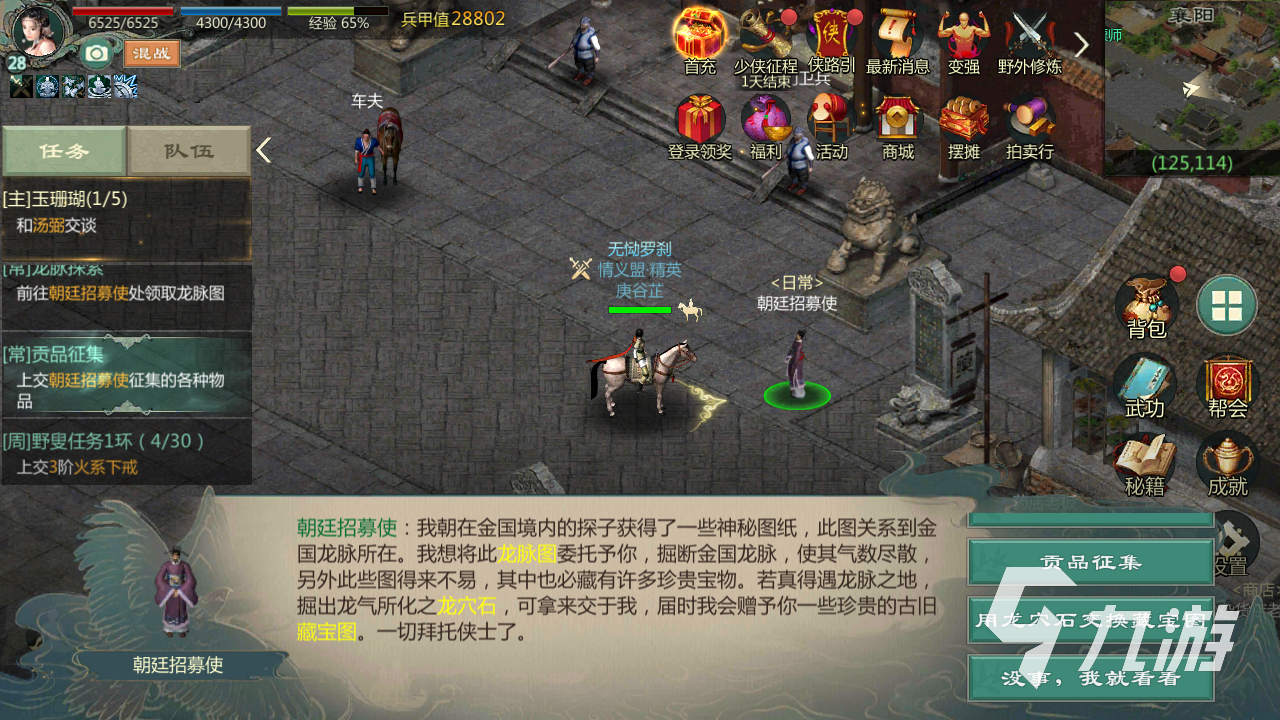 那么兌換寶圖還是有一些要求的,不是說玩家有一個龍穴石就行了的。想要兌換一張完整的寶圖,玩家要收集十個龍穴石才行的,少一個都換不到的。兌換操作也是在招募使這里進行的,直接選擇兌換寶圖就行了。