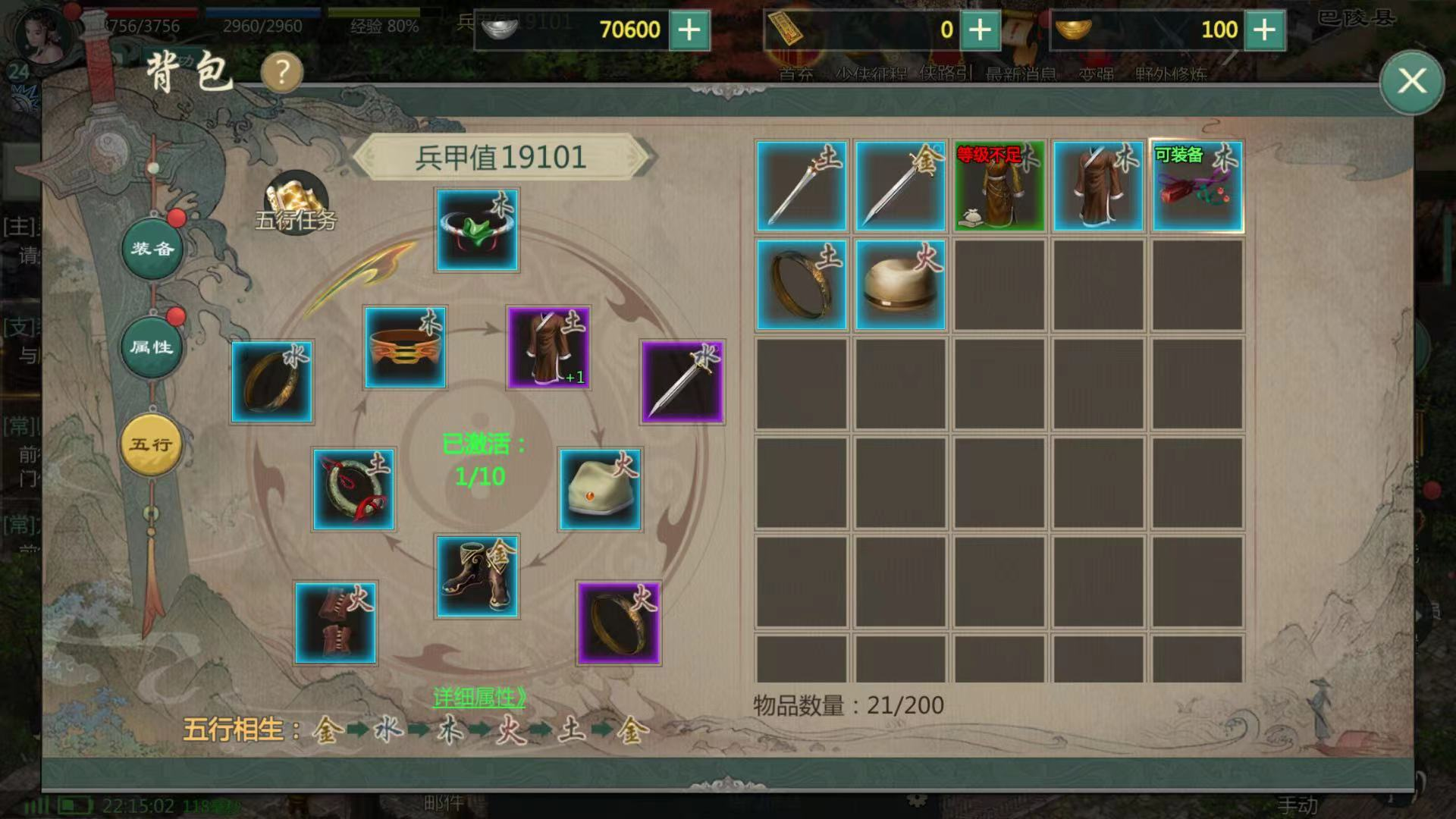 玩家可以選定指定的裝備查看裝備詳細(xì)信息,根據(jù)五行為裝備提升相應(yīng)屬性值,增強裝備的攻擊效果。