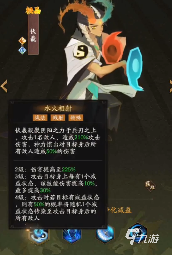 第一個推薦的是伏羲,伏羲這個伙伴也是極品的,品級非常不錯。定位的話是輸出類型的,技能主要是一個穿透類型的技能。戰(zhàn)法技能就是攻擊核心單位,之后神力會進行一個貫穿的傷害,為后方的目標附加一個基礎的傷害百分比。有了伏羲之后,輸出方面可以獲得一定的提升。