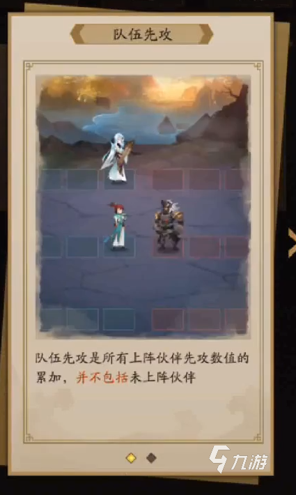 在戰(zhàn)斗的玩法中系統(tǒng)會(huì)根據(jù)伙伴的先攻來布置出手的順序,哪一邊的先攻屬性越高,那么就會(huì)在戰(zhàn)斗中優(yōu)先出售。這個(gè)在高級(jí)的戰(zhàn)斗玩法中是非常重要的,可以直接影響到對(duì)局的勝負(fù)。而這個(gè)先攻屬性是由出戰(zhàn)伙伴的綜合來計(jì)算的,沒有出戰(zhàn)的伙伴是不會(huì)計(jì)算的。