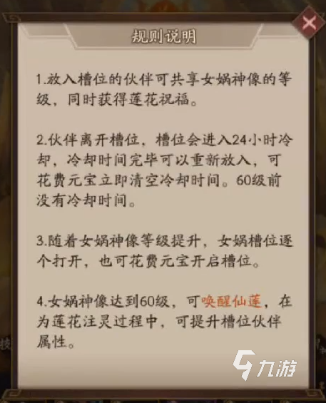 再來就是槽位方面的問題,有的時候會缺少位置。除了提升等級解鎖之外,玩家還可以使用元寶來進(jìn)行解鎖的。這里大家要注意一點,如果說將伙伴離開槽位,那么伙伴和槽位都會進(jìn)入到24小時的冷卻,期間是無法利用的。