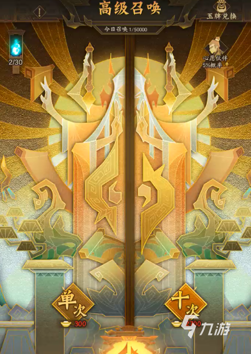 高級召喚:各類玉牌51.69%,卓越伙伴43.70%,極品伙伴4.10%,無雙伙伴0.51%;