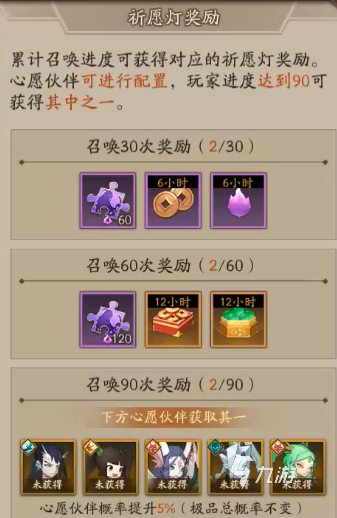 友情召喚:各類玉牌52.80%,卓越伙伴44.79%,極品伙伴2.05%,無雙伙伴0.36%。
