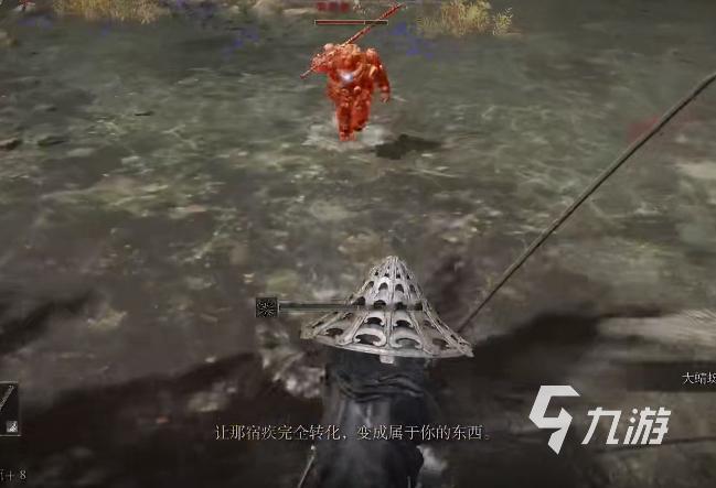 11、然后我們再回到那個賣煮蝦的那個人的位置,通過幾次對話以后,我們再回到大幅找到我們第一次得到詛咒的地方。這里這個人已經(jīng)離開了,他說他在王城那兒等我們。再次回到煮蝦的位置。這里呢我們需要打一個大螃蟹,所以我們打一下。然后呢我會在這個煮蝦的人身上,拿到另一個詛咒。