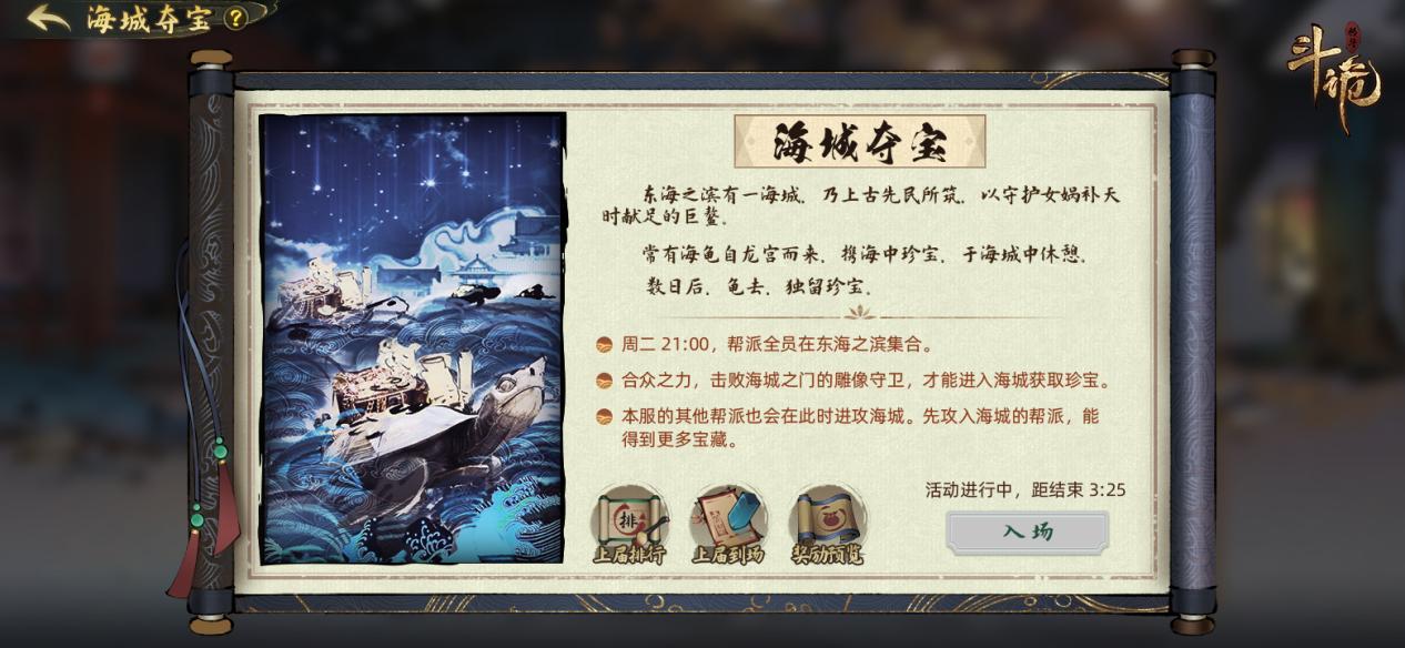 海城奪寶活動預定是在每個周二的晚上9點開啟,各個幫派的成員都可以在都“東海之濱”集結。合大家之力,來試圖擊敗海城之門的雕像守衛(wèi),這樣才能奪得里面的珍寶。