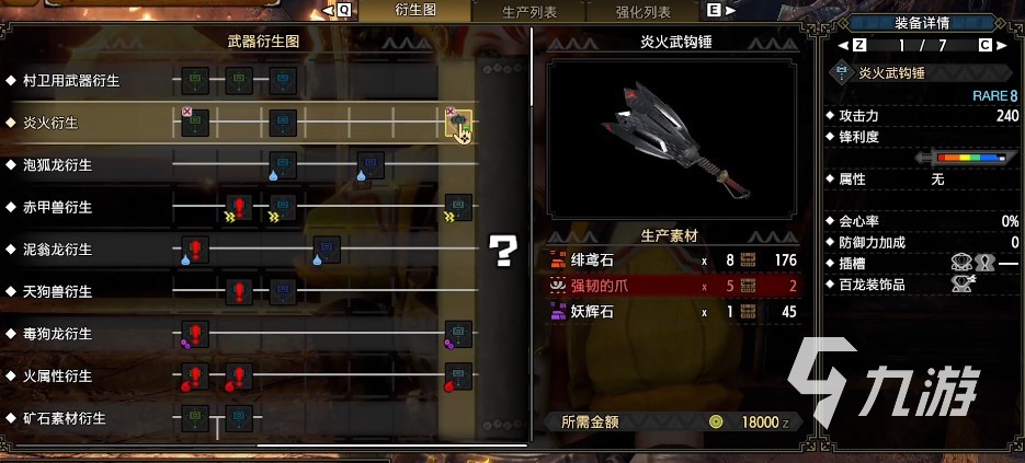 先去制作一把最簡答的大師位的錘子,有上位畢業(yè)的自然更好,這里比較推薦用“炎火武鉤錘”,對應(yīng)制作需要的礦石可以去廢神社挖到。強(qiáng)刃的爪則可以在小盾蟹那里獲取。