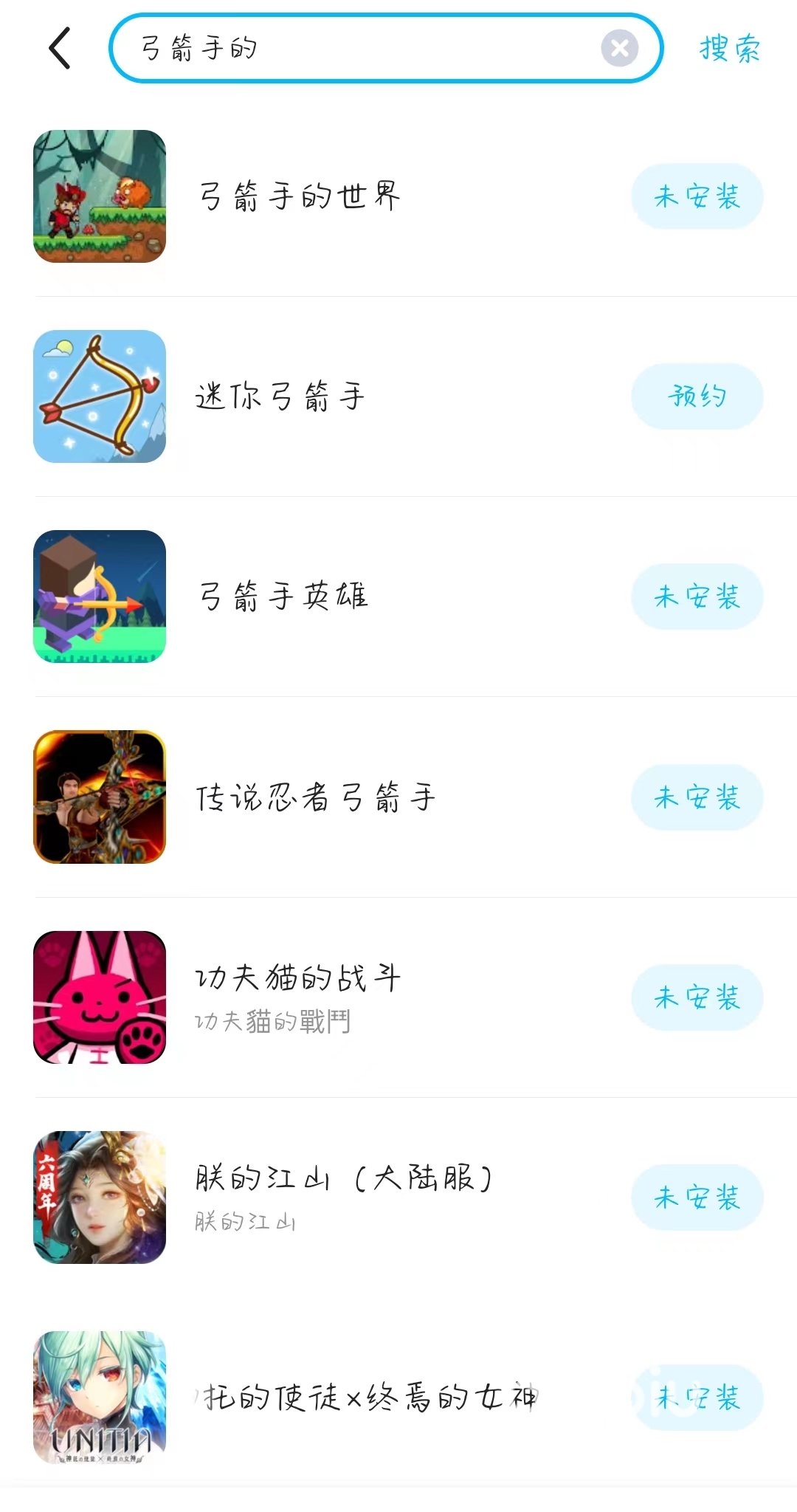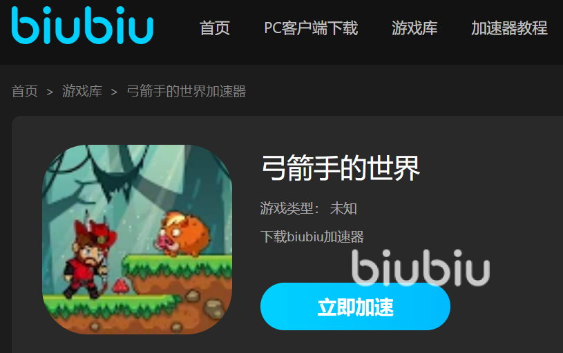 之后玩家可以在搜索欄,輸入自己想加速的游戲,都無需完整輸入名字,biubiu就會自動檢測,將目標(biāo)游戲按優(yōu)先級排列。玩家選擇好自己需要加速的游戲,比如這款弓箭手的世界,將其下載到biubiu里,即可進(jìn)行加速。