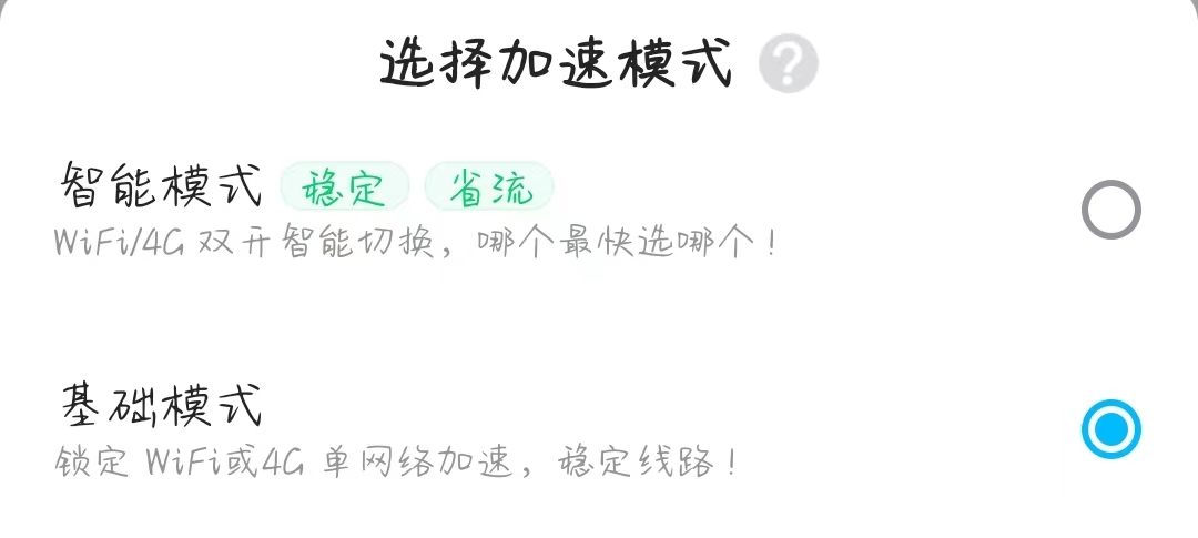 游戲加速也有兩種模式可供選擇。玩家可根據(jù)這款游戲的大小、設(shè)備的內(nèi)存空間、自己預(yù)計使用時長等主客觀因素進(jìn)行選擇,每一種模式都清楚寫明了加速側(cè)重點。