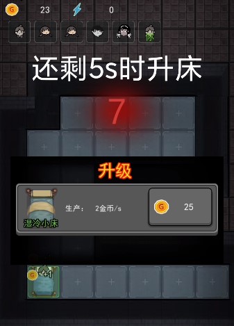 進入房間后,開局先不要升級鐵門,優(yōu)先把金幣全部花在床上,除非床的等級已經(jīng)到達鐵門上限了,那此時再升級鐵門,如果前期遇見怪物進攻你的房門先不要慌,因為此時的他攻擊力不高并且攻擊速度也很慢,所以一時半會是打不開房門的,當你發(fā)現(xiàn)自己房門耐久度不高時,按一下維修齒輪就行了。