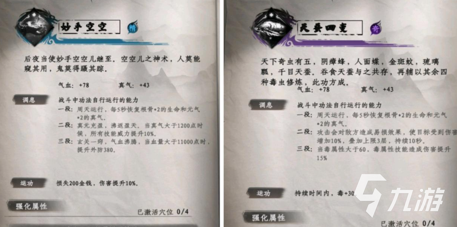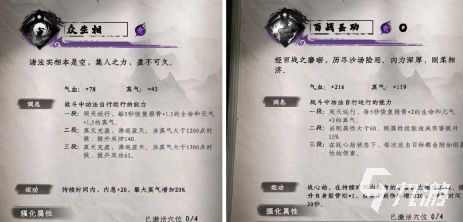 “白首太玄經(jīng)”“天蠶四變”這類通用心法能顯著提升修煉效率和武學(xué)兼容度,獲取往往也極具挑戰(zhàn)性。比如“白首太玄經(jīng)”需要在無心地宮中集齊六把鑰匙,不僅位置分散、獲取條件復(fù)雜,而且途中機關(guān)重重,極具探索性。此外,“百戰(zhàn)圣功”作為全游戲最強通用功法之一,需要在擊殺主線boss吳德后交出信件再謀殺伯子越才可獲得,設(shè)定相當(dāng)黑暗但極具江湖氣息。而“萬法森羅”作為護(hù)體類功法的頂點之作,則需通過高級煉丹、采集稀有材料、服藥等操作才能學(xué)會,使得內(nèi)外兼修成為可能。