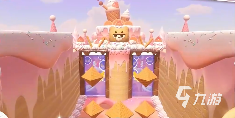 生存關(guān)-甜點匹配,地圖中心會刷新目標甜點,大家需要找到一樣的款式。決戰(zhàn)關(guān)-輪轉(zhuǎn)糖芯,地圖中有旋轉(zhuǎn)的拐杖糖和果凍,撞到果凍會被反彈,合理利用機關(guān)淘汰對手。