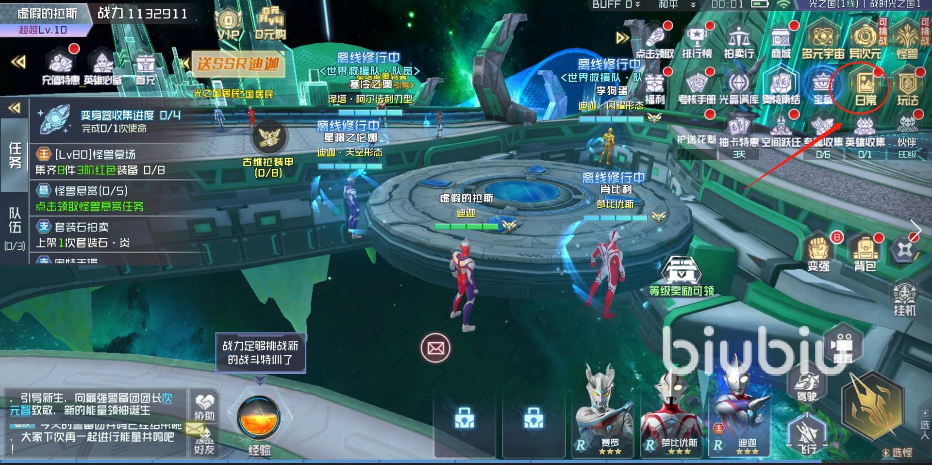 來源: 極光 作者: 大圓 2022年04月30日 20:28本次為大家?guī)淼氖?a class="__link__" href="http://cnwy3.cn/download/420690/">奧特曼集結前期快速提升等級和戰(zhàn)力心得的攻略,大家都知道日常任務是玩家每天要接觸的了,不過有游戲中的日常任務非常的多,大部分玩家可能一天的時間內都完不成,在這里小編就給大家分享一下日常任務的玩法以及哪些必要做的日常任務吧。