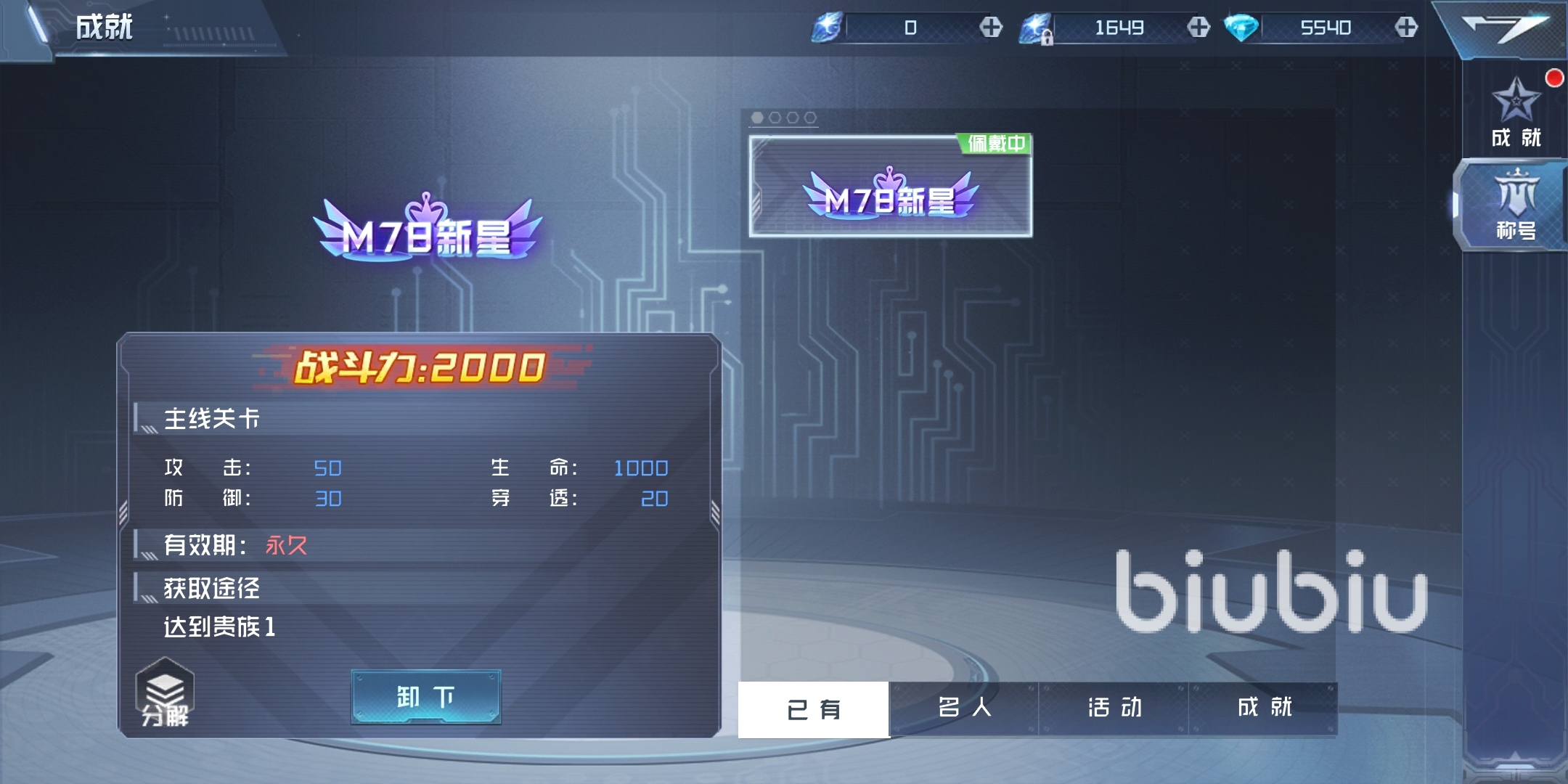稱號系統(tǒng)有分名人稱號、活動稱號以及成就稱號。