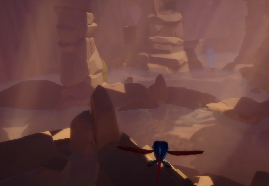 巖洞這里水洼還是挺多的,但是每一個相差的距離也比較遠(yuǎn)。玩家們需要找準(zhǔn)時機來進(jìn)行飛翔才行。不然很容易會出現(xiàn)跳不到水洼的情況發(fā)生。在跳躍的時候需要注意有些地方是有噴泉的,這個我們需要觸碰來增加自身的跳躍高度。