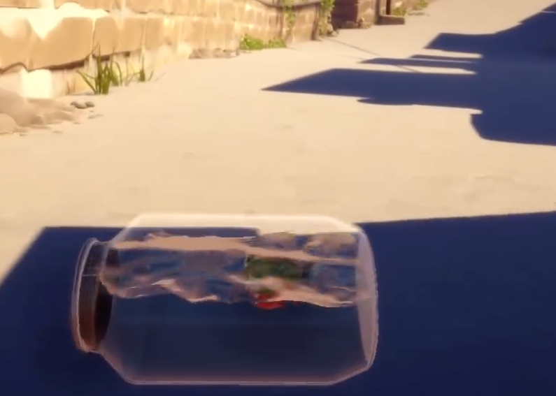 接下來我們需要先去柜子里面找到錘子,現(xiàn)在我們的高度是足夠了,然后可以拎著錘子直接砸破玻璃出去。在落地的時(shí)候我們會(huì)進(jìn)入到一個(gè)小水瓶。接下來便需要穿越馬路,但是需要注意馬路上的車子別被撞到了。