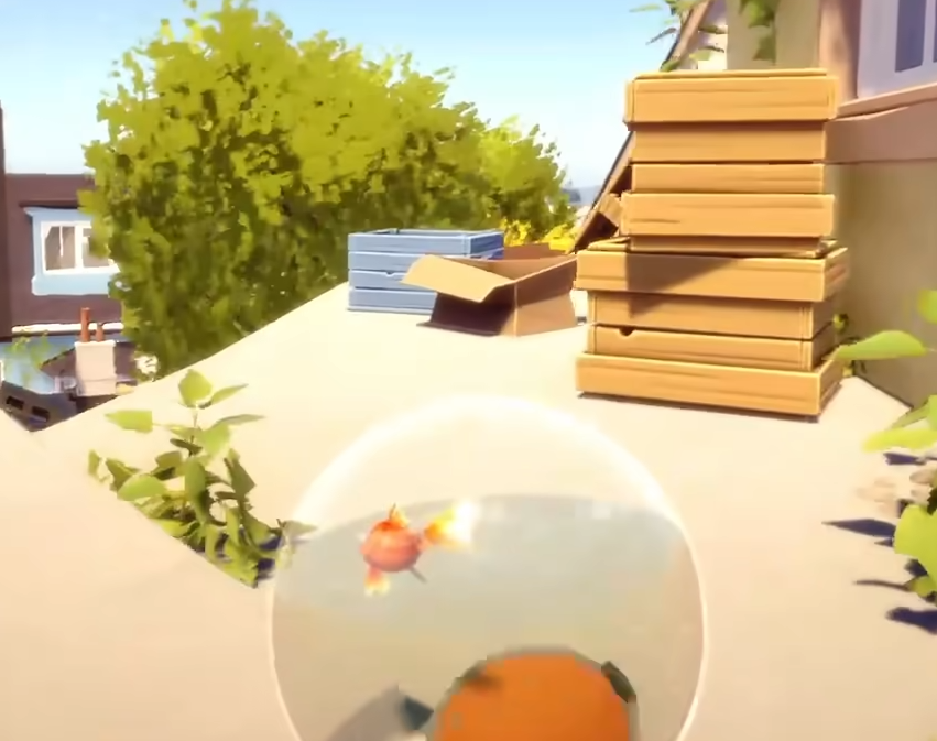 在劇情結(jié)束后我們四在陽臺(tái)上,這里因?yàn)樘幱诟呖?,所以我們?cè)谝苿?dòng)的時(shí)候一定要注意,不要讓魚缸被打碎了。我們主要移動(dòng)的手段就是從電線上進(jìn)行移動(dòng)。每到達(dá)一個(gè)新的地方,玩家們都可以在附近查看一下,不少地方都會(huì)有著面包或者其他的收藏品。