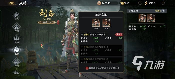 然后張飛和劉備一般不會放在一個隊伍當中,一般都是主將的位置劉備當主力需要糜芳做副將可以觸發(fā)羈絆buff增加四千五的生命和一百二的攻擊以及六十的防御。