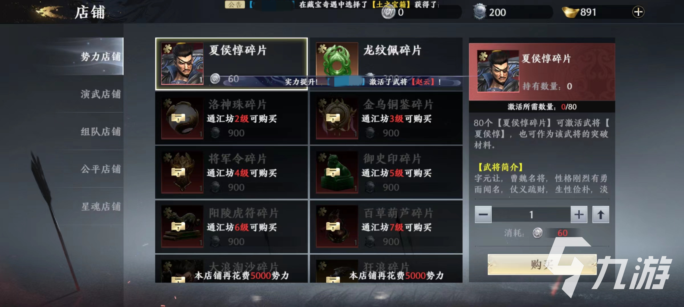 商店中的武將碎片建議全部用來(lái)兌換夏侯敦,這是一個(gè)對(duì)新手非常友好的武將,資質(zhì)18在傷害、生存方面都有不錯(cuò)的表現(xiàn)。夏侯敦的一技能冰封寒月,可以對(duì)敵人造成傷害以及減速,二技能瀚海荊棘,對(duì)大范圍敵人造成多段傷害,同樣附加減速。在前期面對(duì)茫茫多的敵人的BOSS,進(jìn)行減速后可以更好的進(jìn)行位移,左右騰挪。
